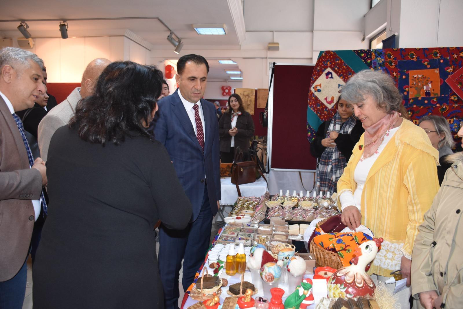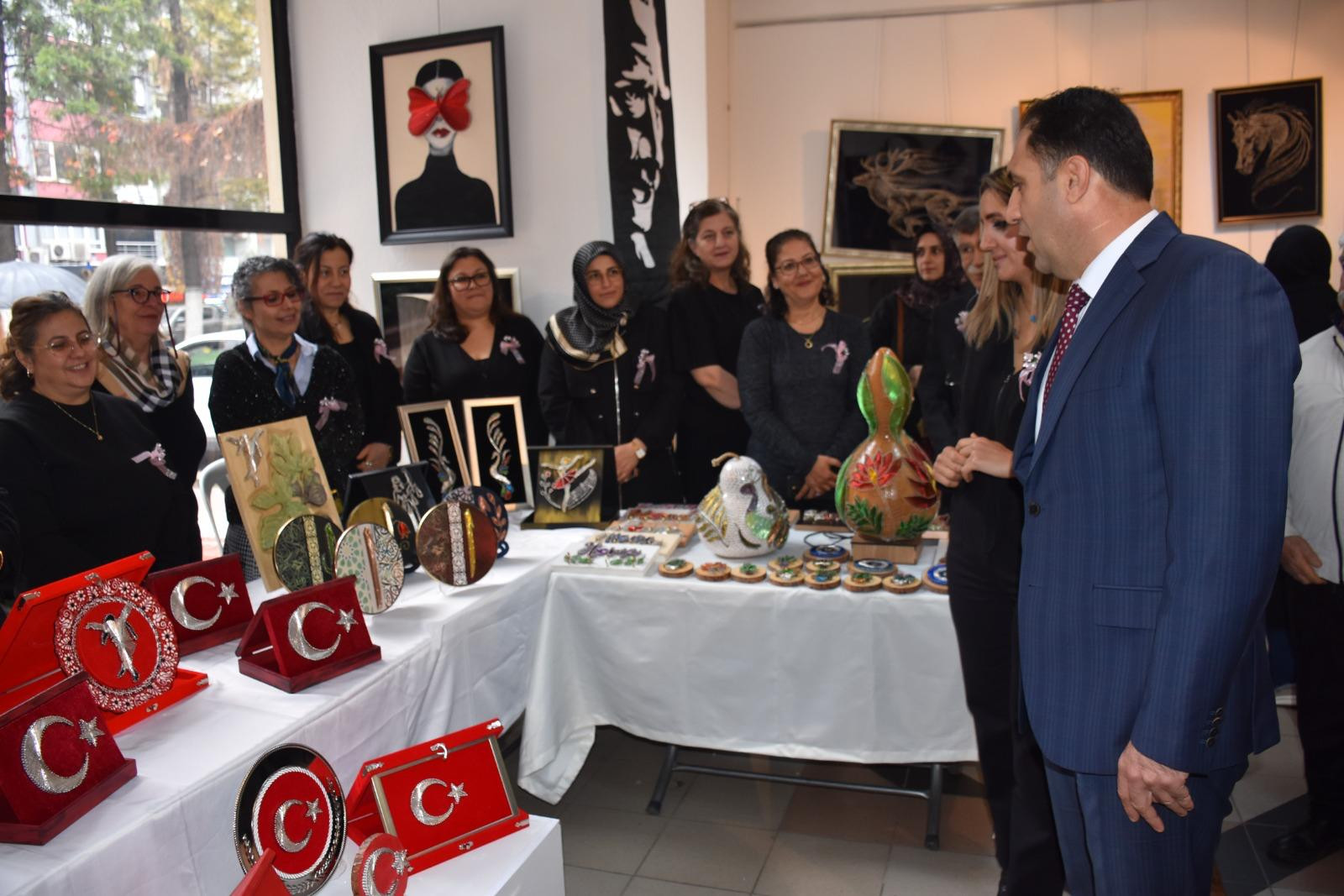 Açılışın ardından sergiyi gezen İl Müdürü Türkoğlu, kursiyerlerle yakından ilgilenerek eserler hakkında bilgi aldı, emeklerinden dolayı katılımcılara ve eğitmenlere teşekkür etti.