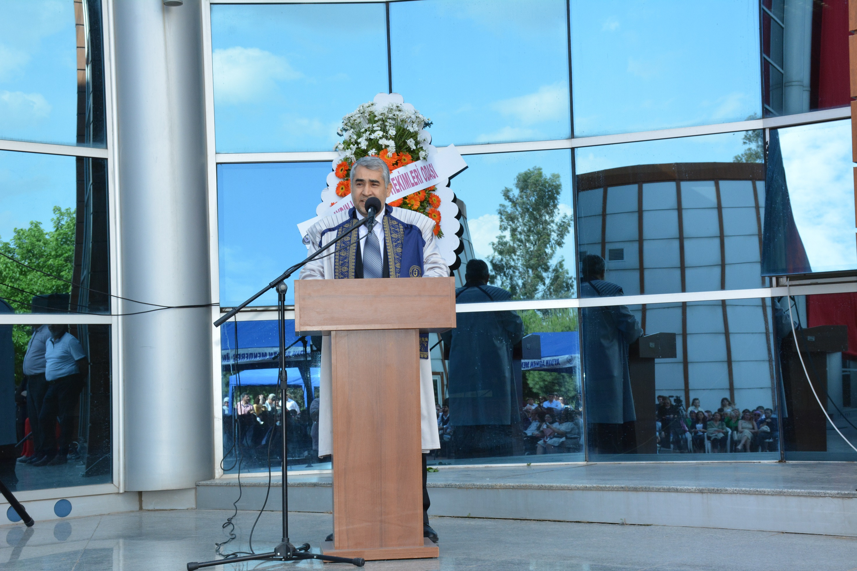 Öğrencilere bundan sonraki süreç için kendinize uygun ve doğru hedefler koymaları tavsiyesinde bulunan Üniversitemiz Rektörü Prof. Dr. Bülent Kent, “Bizler arkamızdaki büyük eğitim ordusuyla ülkemiz, milletimiz ve medeniyetimizin ihyası için çalışmaya, değer üretmeye inşallah bundan sonra da devam edeceğiz. Unutmayın sizler çalıştığınız her alanda Aydın Adnan Menderes Üniversitesini temsil edeceksiniz; bu konuda sizlerden ayrı bir gayret bekliyoruz. Sorumluluğunuz büyük.” İfadelerinin ardından, “Mesleğinizde her zaman gayretli olun, vefalı olun ama en önemlisi adil olun. Unutmayın ki yeryüzü ve gökler adalet sayesinde ayakta durur. Sizleri, Allah’a emanet ediyorum. Rabbim, yar ve yardımcınız olsun; mezuniyetiniz hayırlara vesile olsun.” dedi.